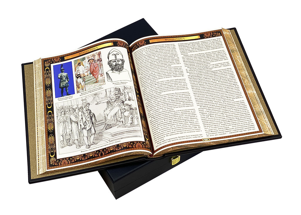 Издание представлено в оригинальной подарочной коробке. Дизайн прекрасно сочетает в себе золотое и блинтовое тиснение, художественную металлическую вставку, соответствующую тематике издания, а также крашенный в тон переплетного материала обрез. Цельнокожаный переплет ручной работы Высококачественная бумага, красочные иллюстрации, ляссе.